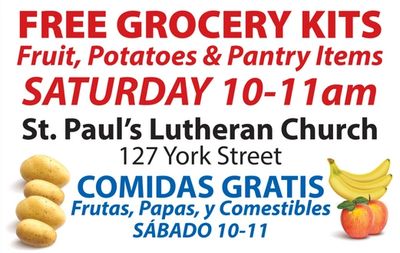 What: We distribute groceries to those who need it each Saturday. The groceries include a a variety of non-perishable foods from the York County Food Bank, plus other items as available.